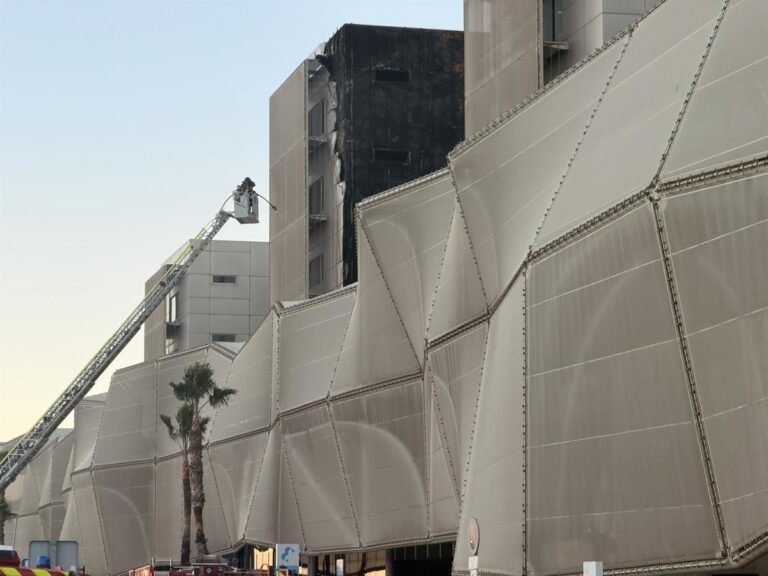 Brandweerlieden zetten zich in voor de blussing van brand in ziekenhuis Santa Lucía in Cartagena